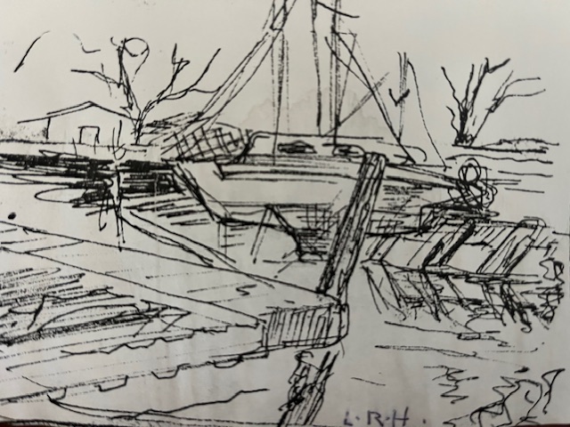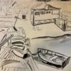 A raw, energetic sketch of a harbor scene, built from quick, confident lines and layered mark-making. The boats and docks emerge through loose structure and movement, giving the piece a sense of immediacy and spontaneity. It feels like a moment captured in motion, full of character and life.